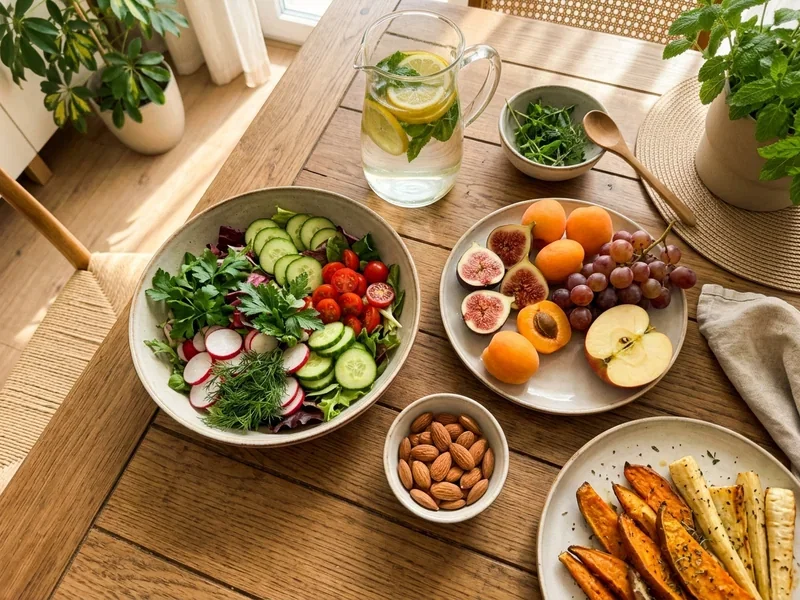 Die mildere Variante. Erlaubt sind basische Lebensmittel: Gemüse, Obst, Kräuter, Mandeln. Kaffee, Zucker, Getreide, Fleisch und Milchprodukte entfallen. Deutlich alltagstauglicher als Heilfasten, gute Einstiegsform für Fasten-Neulinge und ideal mit Wanderprogramm kombinierbar.