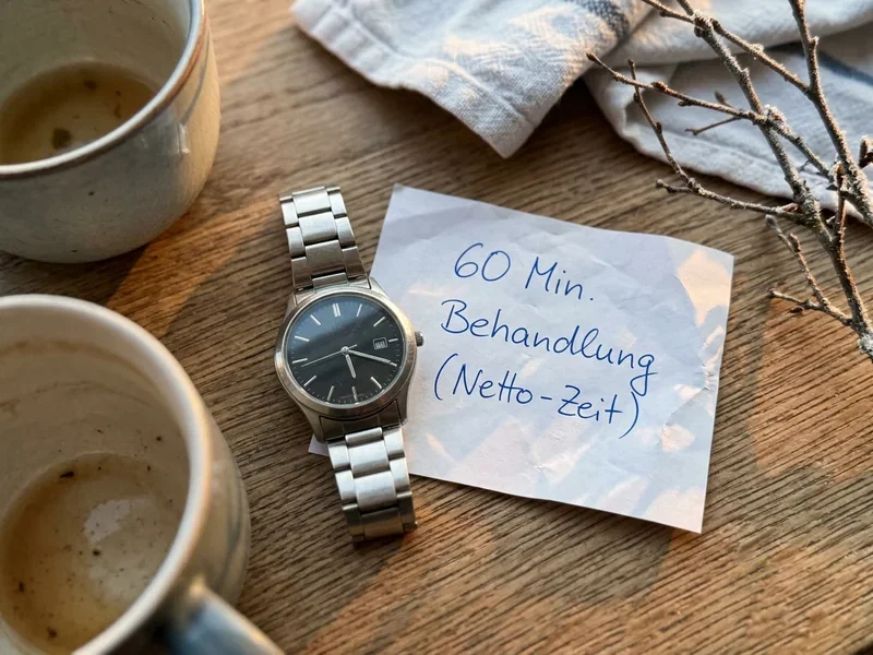Achte auf die Netto-Zeit am Körper. Manche Hotels werben mit 60 Minuten Shiatsu, rechnen aber Anamnese, Umkleiden und Nachruhe mit ein — übrig bleiben dann 40 Minuten Behandlung. Frage gezielt: Wie lange liegt man tatsächlich auf der Matte? Bei einer 75-Minuten-Sitzung sollten mindestens 60 Minuten reine Arbeit sein.