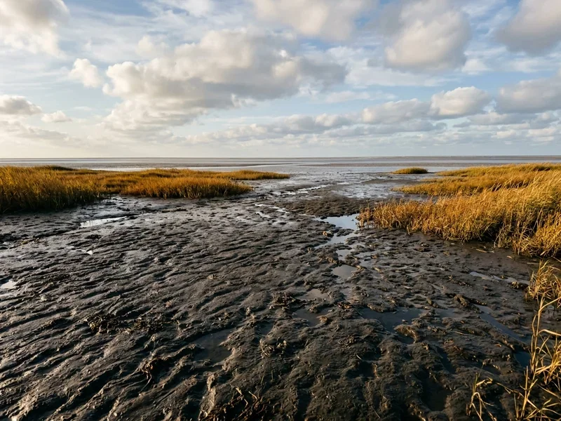 Hier steht der dunkle Wattschlick im Mittelpunkt. Warme Schlickpackungen auf Rücken, Schultern oder den ganzen Körper — reich an Mineralien, stark durchblutungsfördernd. Typisch für Borkum, Cuxhaven, St. Peter-Ording. Kräftiger als Algen, besonders gut bei Verspannungen.