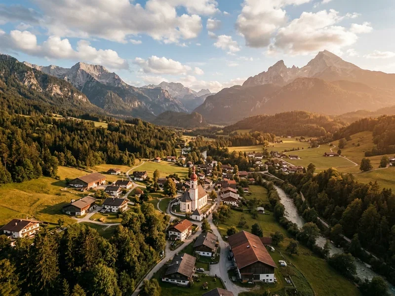 Die ruhigeren Nachbarorte zwischen Salzburg und Berchtesgaden. Marktschellenberg liegt am Untersberg mit der Almbachklamm, Bischofswiesen schmiegt sich südlich an den Hauptort. Gute Alternativen, wenn das Zentrum ausgebucht oder zu teuer ist.