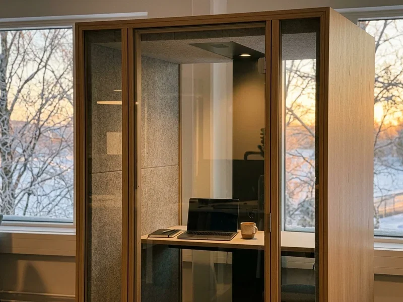 Eine Telefonbox, ein abschließbarer Meetingraum oder ein leiser Co-Working-Tisch. Wichtig für vertrauliche Gespräche — und damit du dich nicht im Spa-Bereich verstecken musst, wenn der Vorstand anruft.