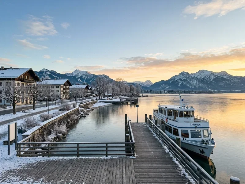 Oktober ist das unterschätzte Fenster. Die Almabtriebe rund um Kampenwand und Hochries fallen auf die ersten zwei Wochen, das Laub färbt sich, und an klaren Föhntagen ist die Sicht über den See bis zu den Hohen Tauern frei. Wanderwege zur Hohen Salve oder zur Hochrieshütte sind dann am schönsten. Im Winter konzentriert sich Wellness auf die Therme in Bad Endorf — das Skigebiet Hochries oder das nahe Sudelfeld liegen unter einer Stunde entfernt, aber der Chiemsee selbst ist eher Frühlings- bis Herbstziel.