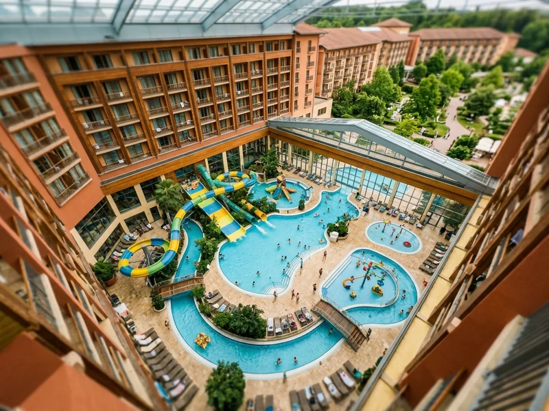 Große Häuser mit 150+ Zimmern, Wasserrutschen, Strömungskanal, manchmal eigener Reiterhof oder Streichelzoo. Hier ist Programm Programm. Der Adults-Spa ist eigenständig und oft sehr gut, steht aber im zweiten Rang — das Kind kommt zuerst.
