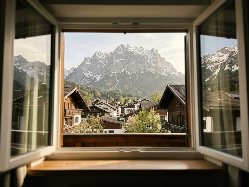 Zwanzig Kilometer südöstlich, direkt am Karwendel und an der Grenze zu Tirol. Bemalte Häuser, Geigenbau-Tradition, ruhiger als Garmisch. Gut für alle, die alpinen Charme ohne Olympia-Trubel suchen — gerade für ein zweites Standbein im Aufenthalt.