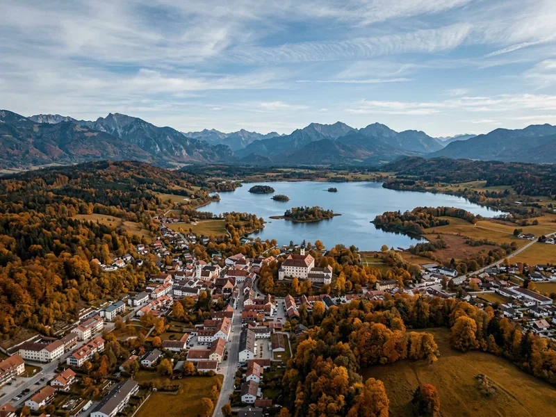 Marktgemeinde im Voralpenland, 25 Kilometer nördlich von Garmisch. Staffelsee mit sieben Inseln, Kandinsky-Erbe im Schlossmuseum, gute Wellness-Hotels mit See- statt Bergblick. Eine eigene, leisere Welt im selben Tagesausflugsradius.