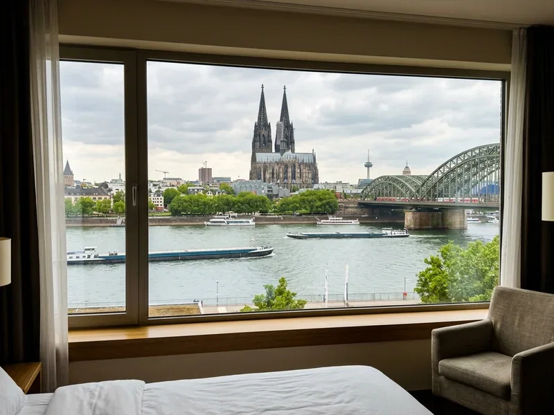 Traditionshäuser zwischen Dom, Rheinufer und Altstadt-Gassen. Spa-Etagen mit Stadtblick, Frühstück mit Glockengeläut, alles in Gehweite. Für Erstbesucher die direkteste Art, Köln zu erleben — mittendrin und doch oberhalb des Trubels.
