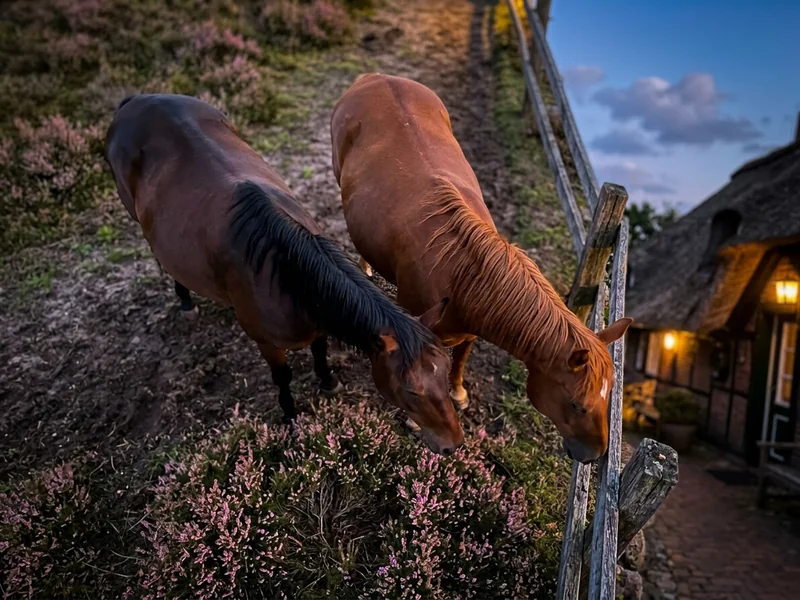 Klassische Reetdach-Hotels rund um Wilseder Berg, Undeloh und Egestorf — viele mit eigener Koppel oder Anschluss an einen Heide-Schäferhof. Morgens Heideritt, mittags Sauna, abends Lammbraten. Für Paare, die Natur und Tradition als Programm wollen.