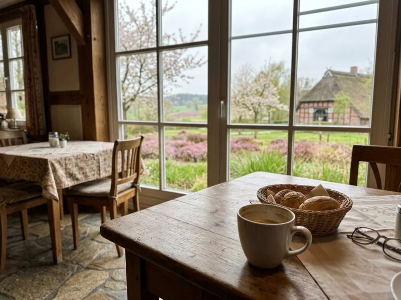 Für Wellness-Gäste ist die Region ein leiser Gegenentwurf zu den Alpenresorts. Die Hotels sind oft familiengeführt, naturverbunden und in Heide-Dörfer eingebettet — Reetdach-Höfe, kleine Saunalandschaften mit Blick auf die Koppel, Halbpension mit regionalem Lamm und Bienenhonig. In Bad Bevensen kommt eine echte Kurtradition mit Jod-Sole und Moor dazu, in Soltau und Schneverdingen ist die Heide das Therapeutikum. Wer hier zwei Nächte bleibt, fährt langsamer wieder los, als er angekommen ist.