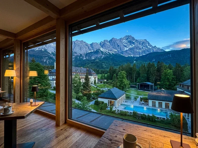 Oberbayern · zwei Spa-Häuser, eigene Konzertsäle, Familienetage und ruhige Erwachsenen-Bereiche getrennt. Helikopter-Anreise möglich. Beliebt bei Gästen, die Kultur und Hochgebirge in einem Aufenthalt suchen.