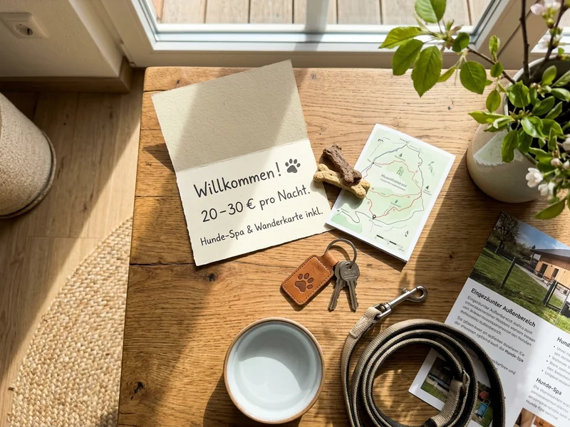 Der Aufpreis liegt typisch bei 15–30 € pro Nacht. Darin enthalten sind meist Hundebett, Napf, Decke und die Endreinigung. Manche Häuser nehmen für kleine Hunde weniger, andere staffeln nach Größe. Frag vor der Buchung, ob Futter oder Hundesitting extra berechnet werden.