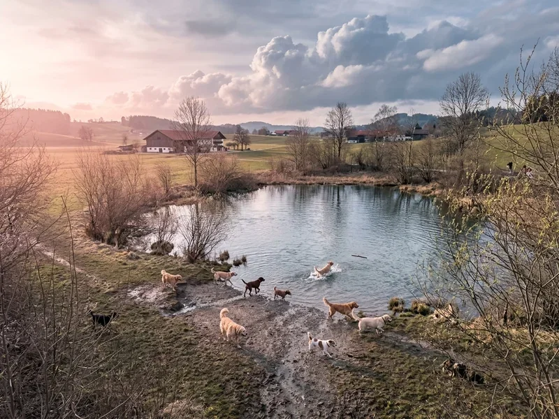 See, Bach oder Teich, an dem dein Hund schwimmen darf. Die Mecklenburgische Seenplatte ist hier Spitze, aber auch viele Allgäuer Häuser haben einen Badezugang in Reichweite.