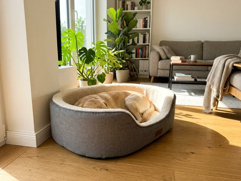 Nicht nur eine alte Decke, sondern ein eigenes, sauberes Hundebett in passender Größe. Das zeigt, dass dein Hund mitgedacht wird — nicht nur geduldet.