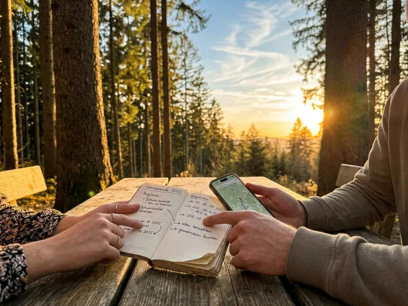 Das Wochenende als jährliches Format, abwechselnd bezahlt oder geteilt. Hier lohnt es sich, jedes Jahr eine andere Region zu wählen — einmal Schwarzwald, einmal Bodensee, einmal Ostsee. Ideal sind Hotels, in denen die Saunazeiten gut zur Tagesstruktur beider passen: Ruheaufgüsse am Nachmittag, kein lauter Abend-Event.