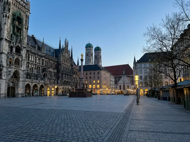 Frauenkirche, Viktualienmarkt, Hofbräuhaus — touristisch, aber an einem Vormittag entspannt machbar. Vom Marienplatz fahren U- und S-Bahn in alle Richtungen, ideale Basis für kurze Touren.