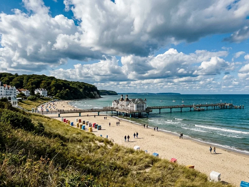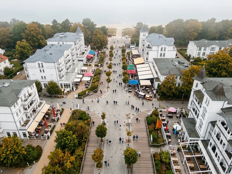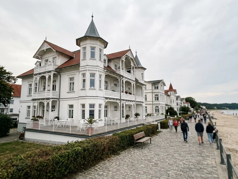 Grösstes und belebtestes Seebad der Insel. Lange Promenade, dichte Hotel-Auswahl, viele Restaurants. Wer das klassische Rügen-Erlebnis sucht, findet es hier — inklusive Bäderarchitektur in weisser Pracht.